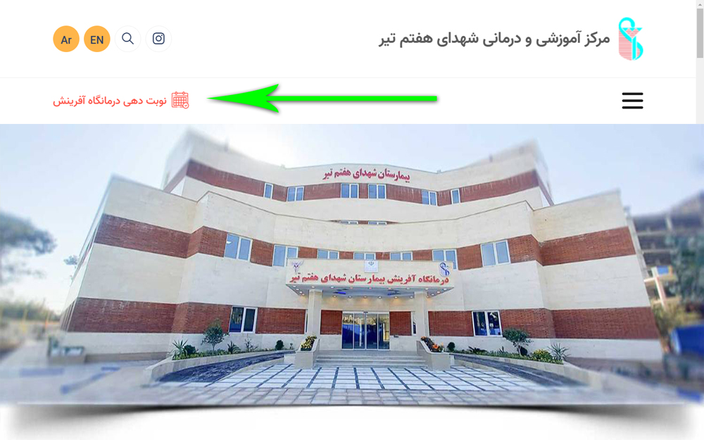 1 _ ورود به وبسایت بیمارستان به آدرس زیر :